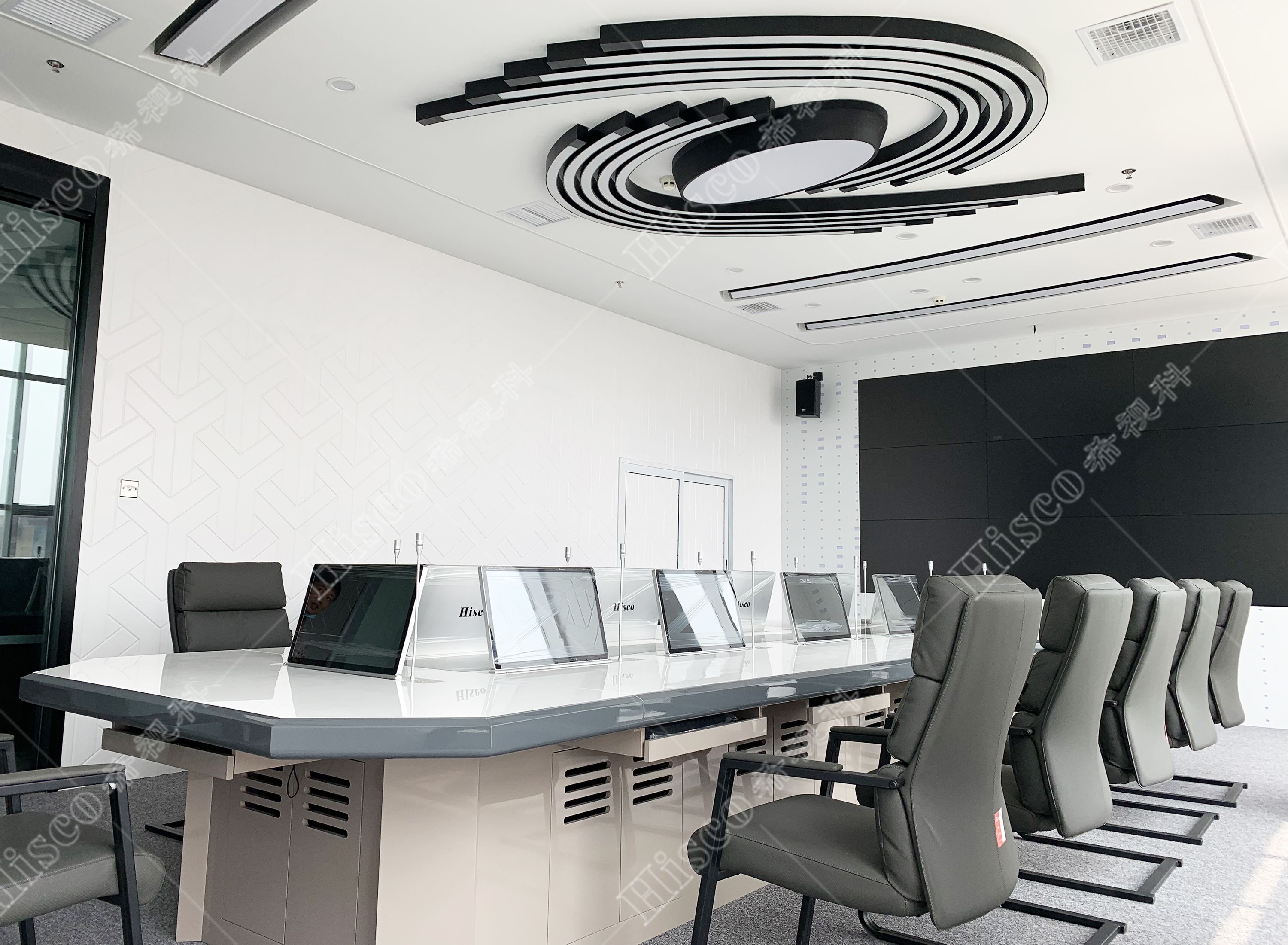 本次项目为司法机关会议室会议系统建设,主要设计了数字会议系统、扩声系统、显示系统、集中控制系统、矩阵系统、无纸化升降等。