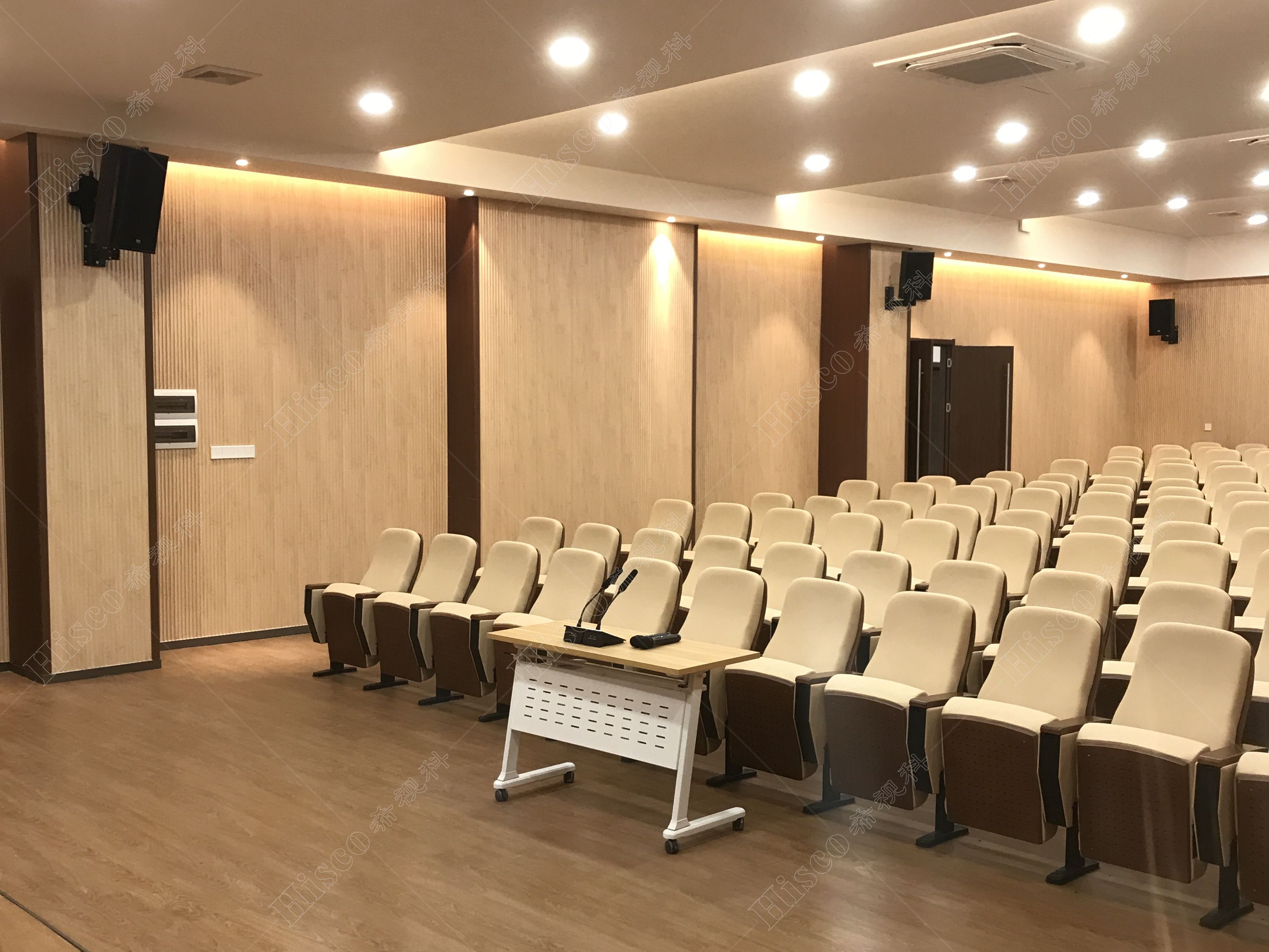 会议室内需要建设扩声系统、会议系统、显示系统,智能化系统等,主要满足日常开会的讨论、发言等等。综合礼堂的设计,追求语言的清晰度和饱和度,声压级级要求达到国家厅堂扩声系统一级标准。同时预留了丰富的接口,方便以后系统的扩展,实现整个系统的强大功能。